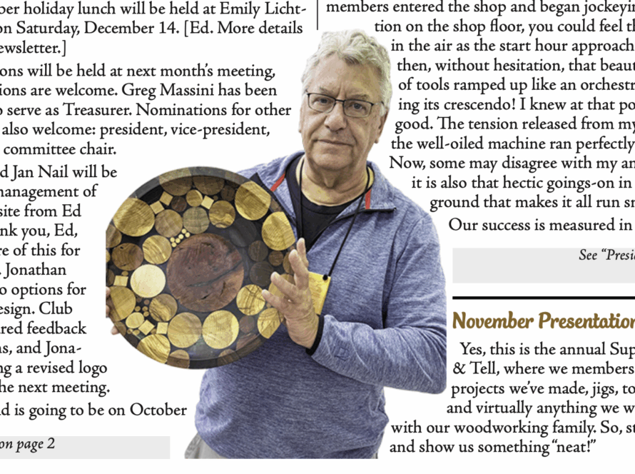 This month’s newsletter captures everything that makes the club special — creativity in the shop, community spirit, and a toy build that came together with incredible teamwork. The November issue walks through the October meeting highlights, showcases a wide range of clever jigs and fixtures members brought in for the presentation, and recaps the Toy Build weekend where more than twenty volunteers helped finish every toy ahead of schedule. It also features safety tips, new woodworking resources, and a heartfelt thank-you letter from one of the charities receiving this year’s toys.